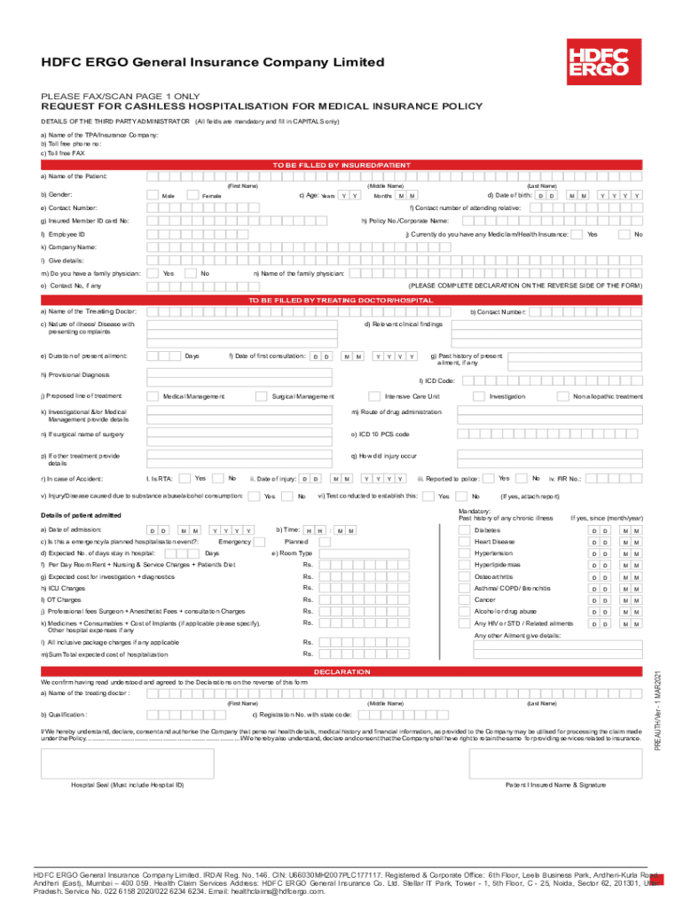 Typically, you will need your health insurance policy number, personal identification, medical reports, and admission letter from the hospital. Be sure to have these ready when filling out the form.