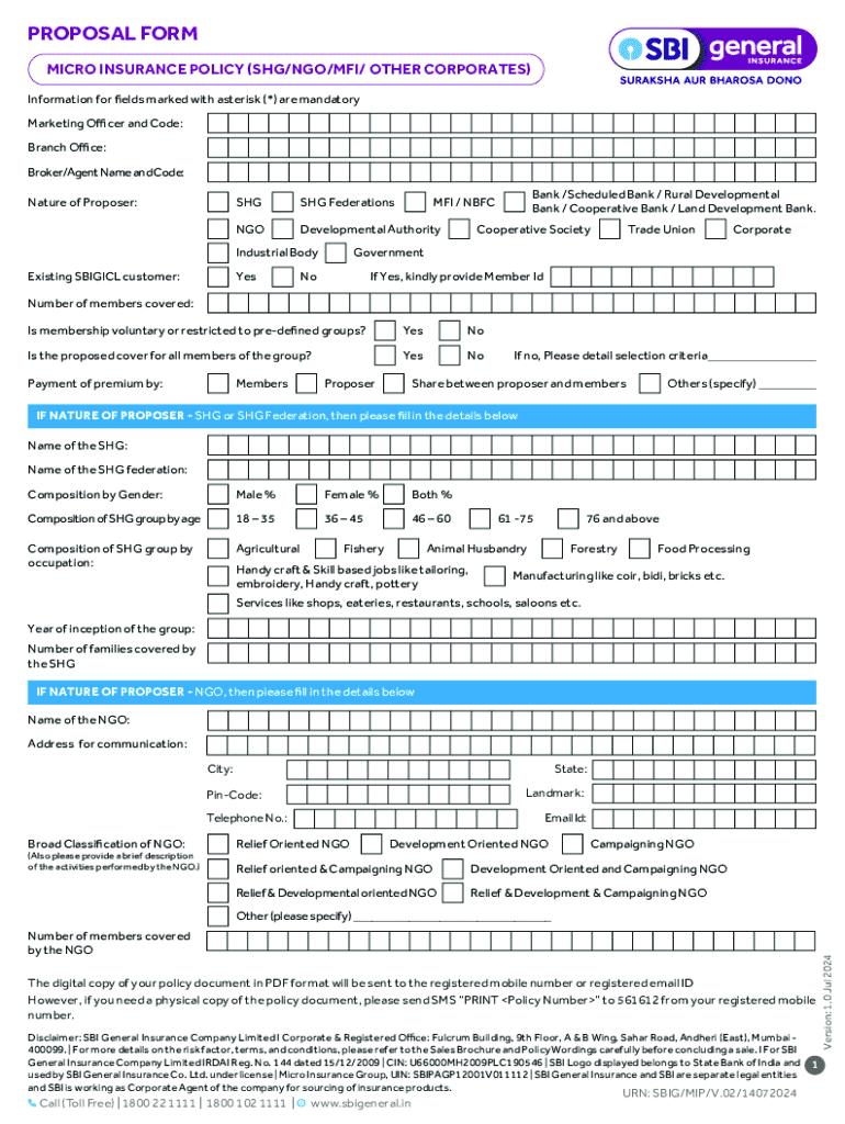 Get the free Micro Insurance Policy Proposal Form