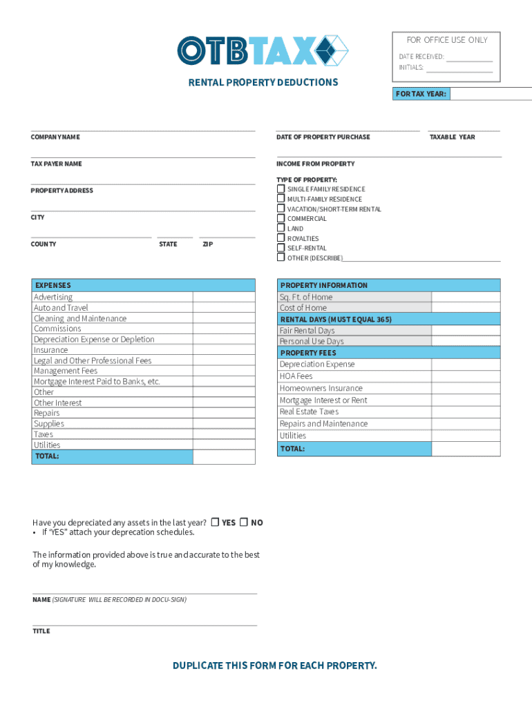Get the free Rental Property Deductions Form