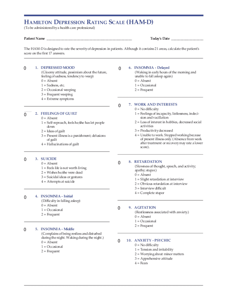 Get the free Hamilton Depression Rating Scale