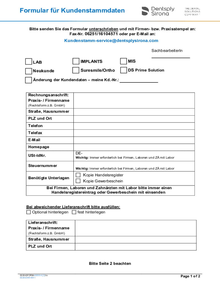 Die Bearbeitung des Kundenstammformulars erfolgt normalerweise umgehend, können jedoch je nach internen Prozessen Unterschiede bestehen.