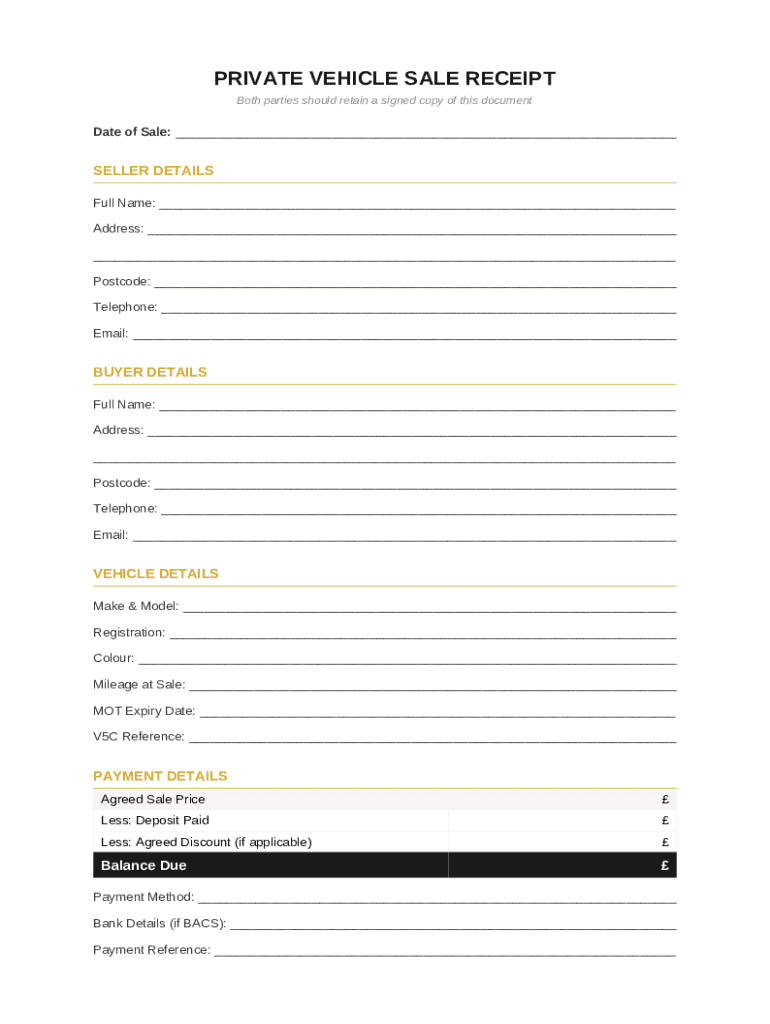 When completing the private vehicle sale receipt, it is essential to understand each section's requirements. Key fields include:
