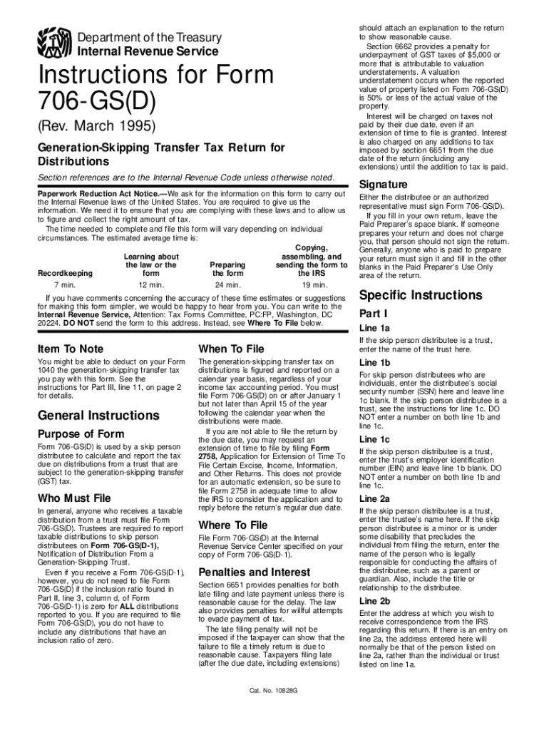 The Form 706-GSD Instructions is a guiding document used to assist individuals in accurately completing the 706-GSD form for estate tax purposes.