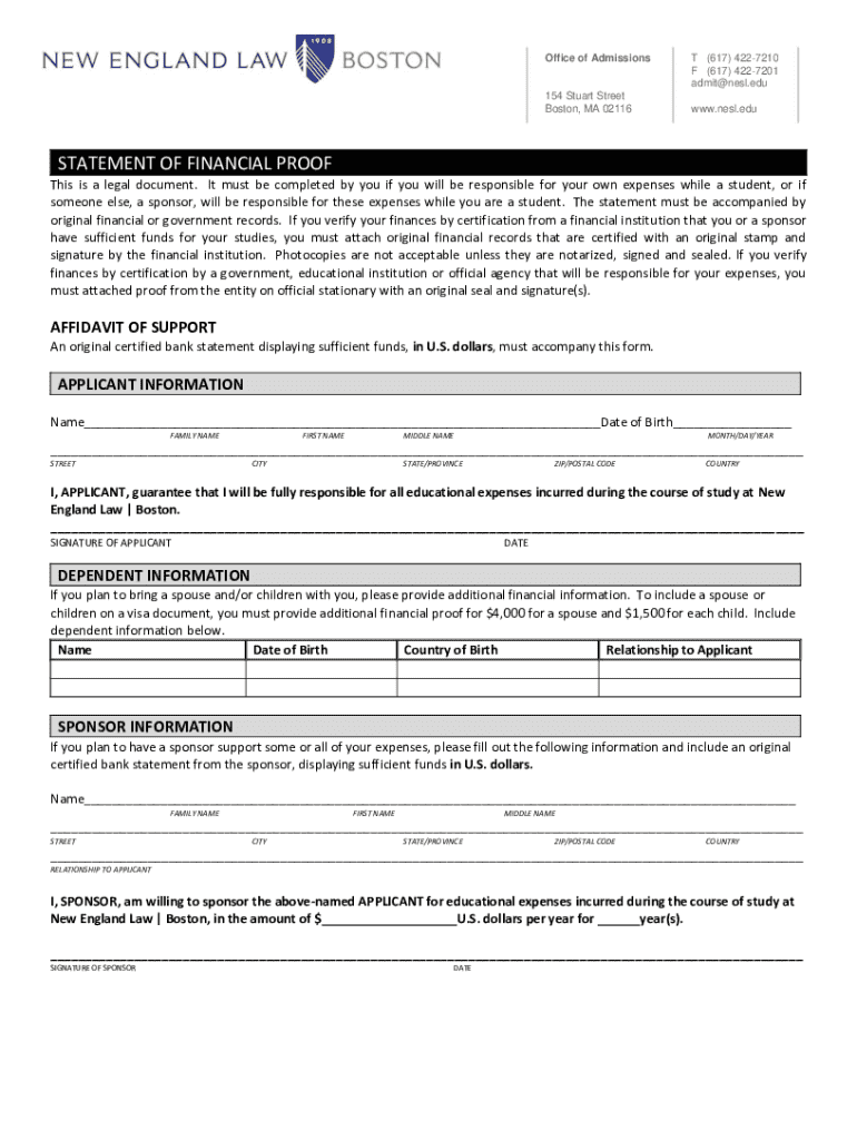 Get the free Statement of Financial Proof