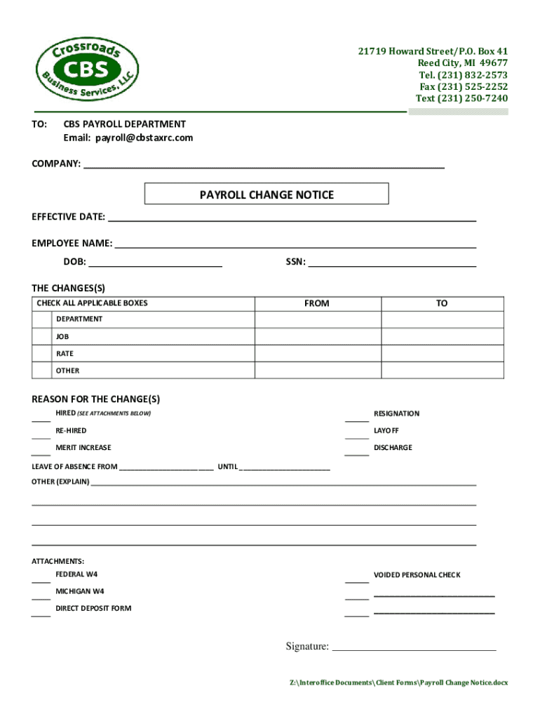 Get the free Payroll Change Notice Form