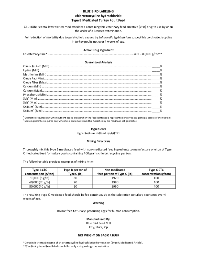 Eligibility Criteria for Submitting the Type B Medicated Turkey