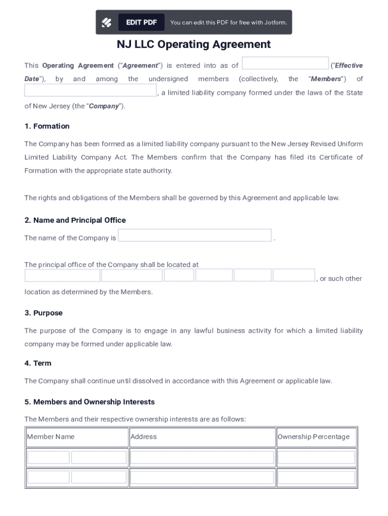Access the NJ LLC Operating Agreement template on pdfFiller.