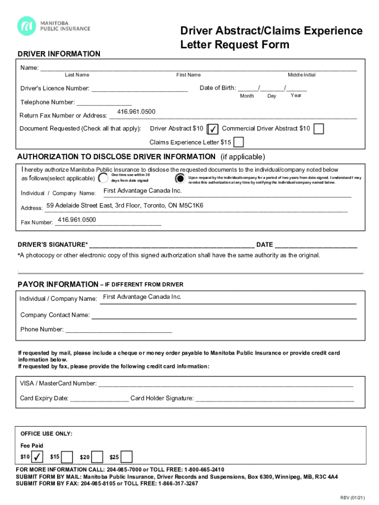 Get the free Driver Abstract/Claims Experience Letter Request Form