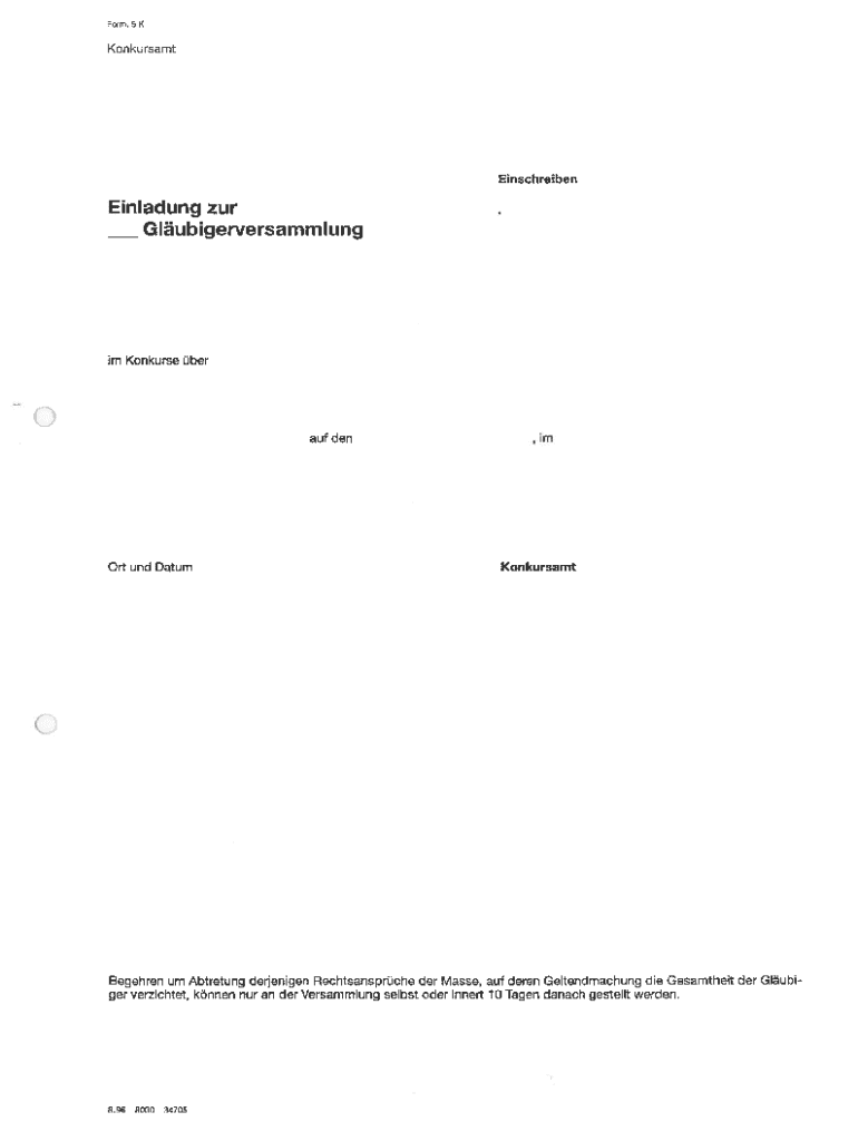 Beispiel oder Muster einer ausgefüllten Einladung zur Gläubigerversammlung