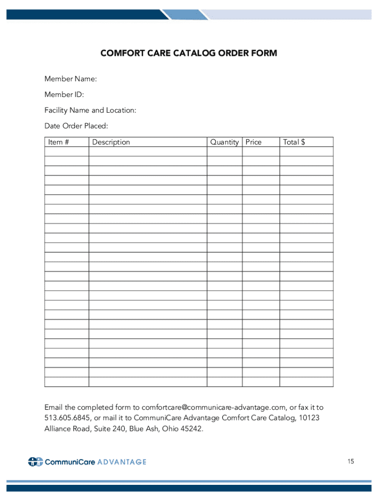 Get the free Comfort Care Catalog Order Form