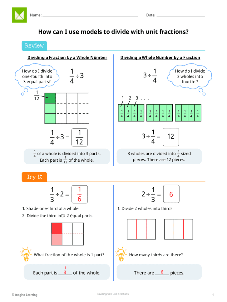 The form is primarily designed for teachers, tutors, and students involved in mathematics education. It serves as an instructional tool to demonstrate understanding of dividing unit fractions.
