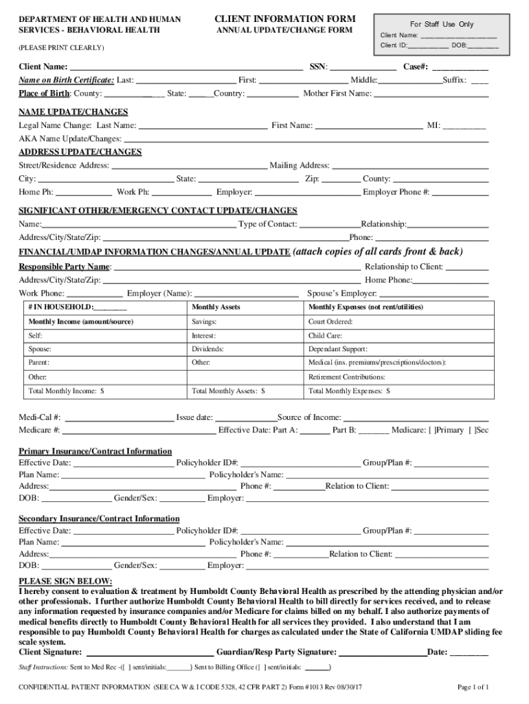 Get the free Humboldt County Behavioral Health Client Information Form