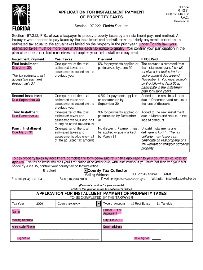 Get the free Florida Property Tax Installment Payment Application
