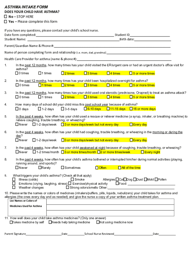 Comprehensive Guide to asthma intake form