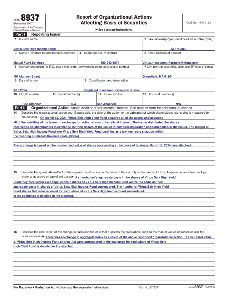 Define what the Form 8937 is.