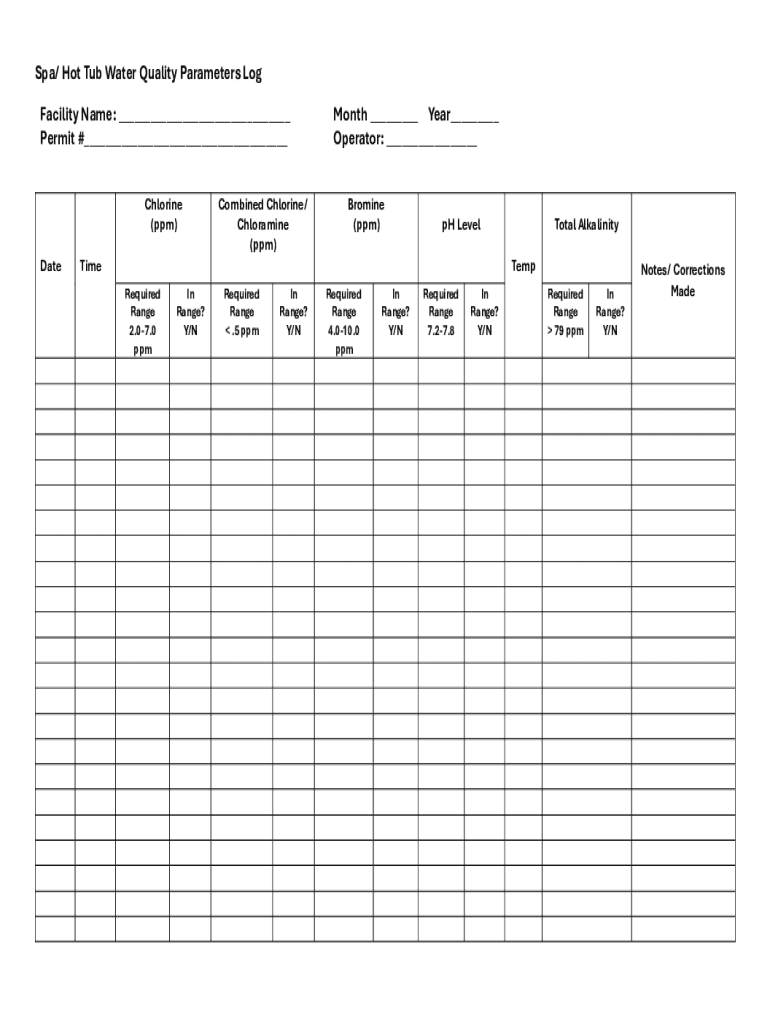 Get the free Spa Hot Tub Water Quality Parameters Log