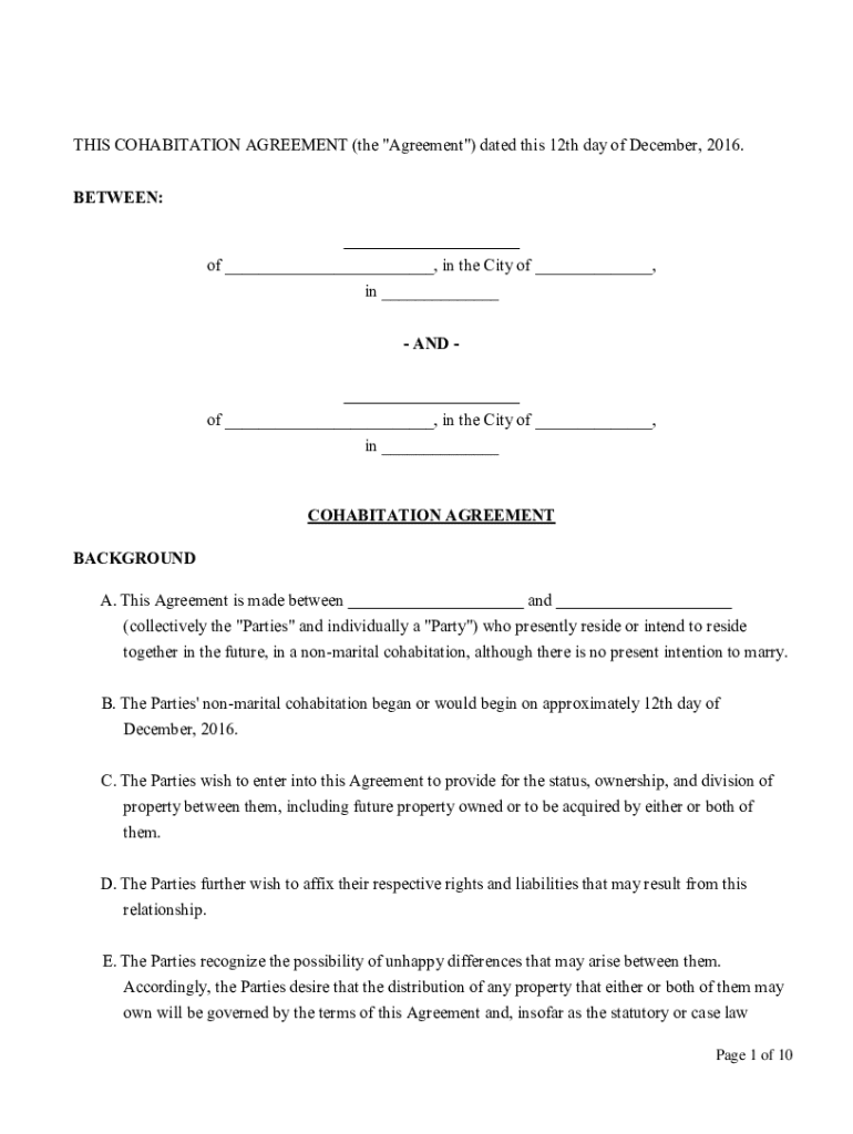 Get the free Cohabitation Agreement