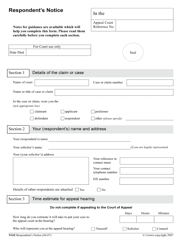 How to fill out n162 - respondent s