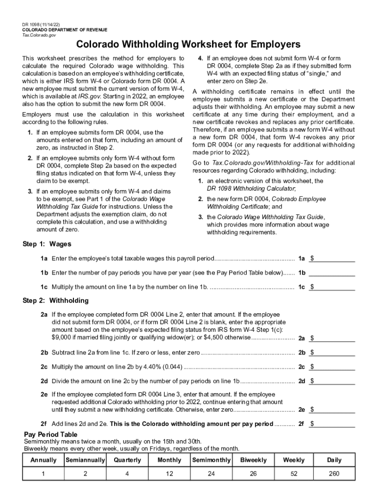 What is colorado withholding worksheet for
