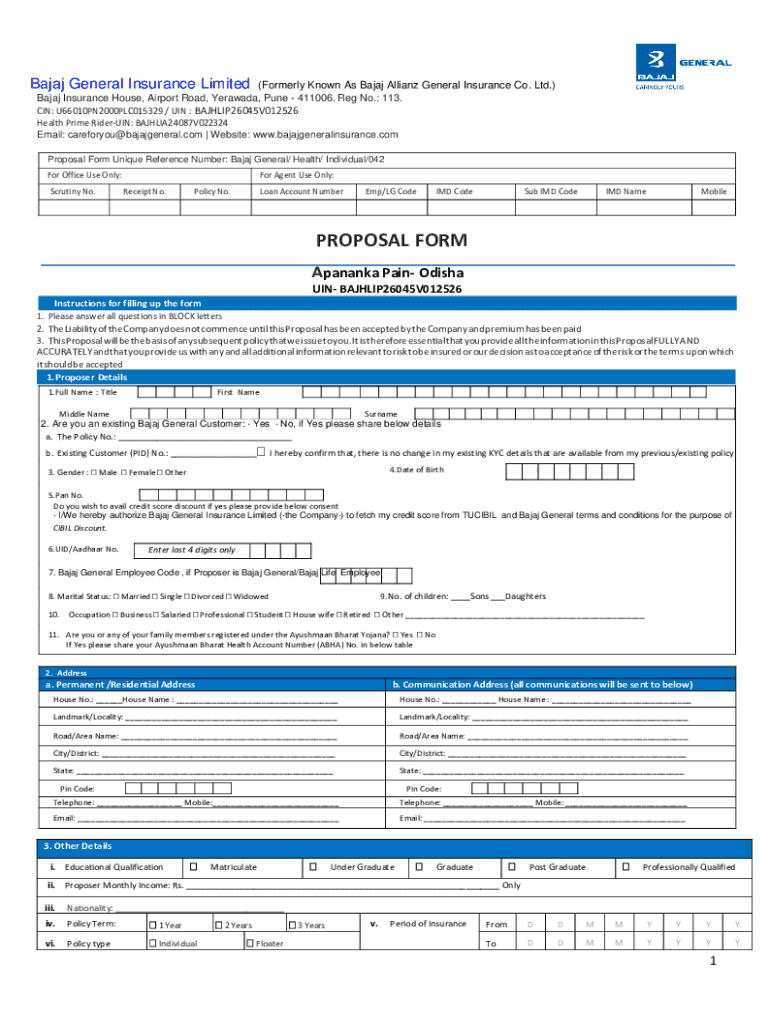 Moreover, existing Bajaj customers can leverage this proposal to review or renew their health insurance plans effectively.