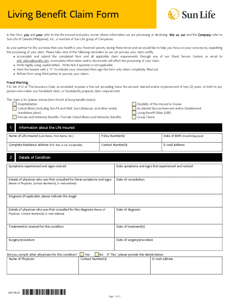 Get the free Sun Life Living Benefit Claim Form