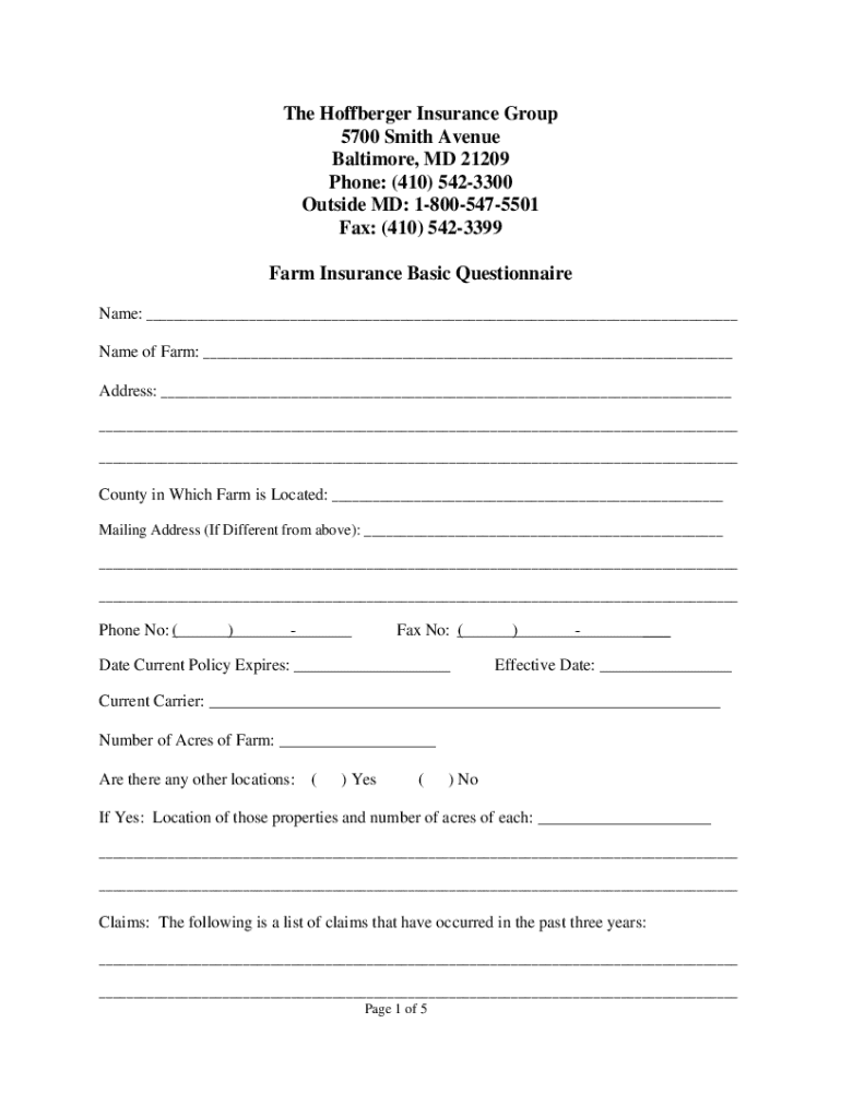 The farm insurance basic questionnaire is a document used by farmers to assess their insurance needs and protect their agricultural assets.