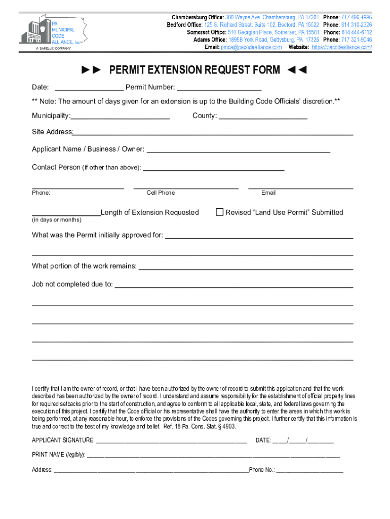 Understanding the importance of the permit extension request form ensures you remain compliant and factors in the various situations that may necessitate its use.