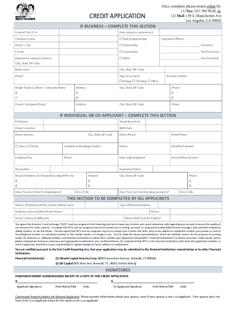 Get the free Credit Application Form