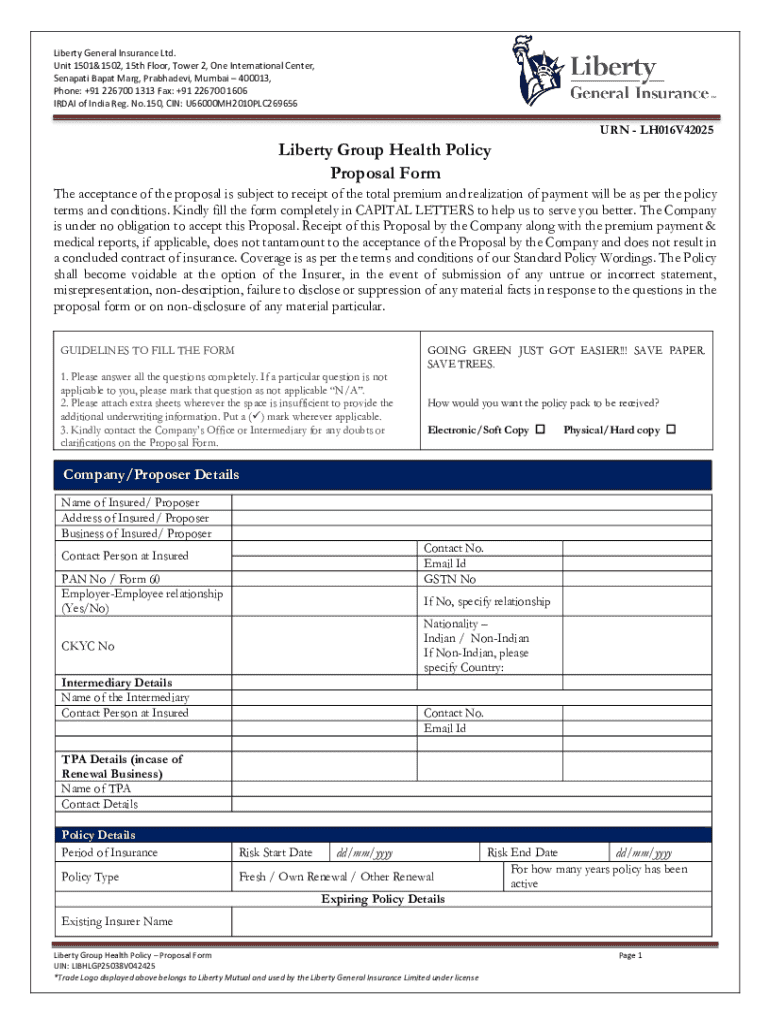 Filling out the Liberty Group Health Policy form online requires attention to detail. The process involves the following steps: