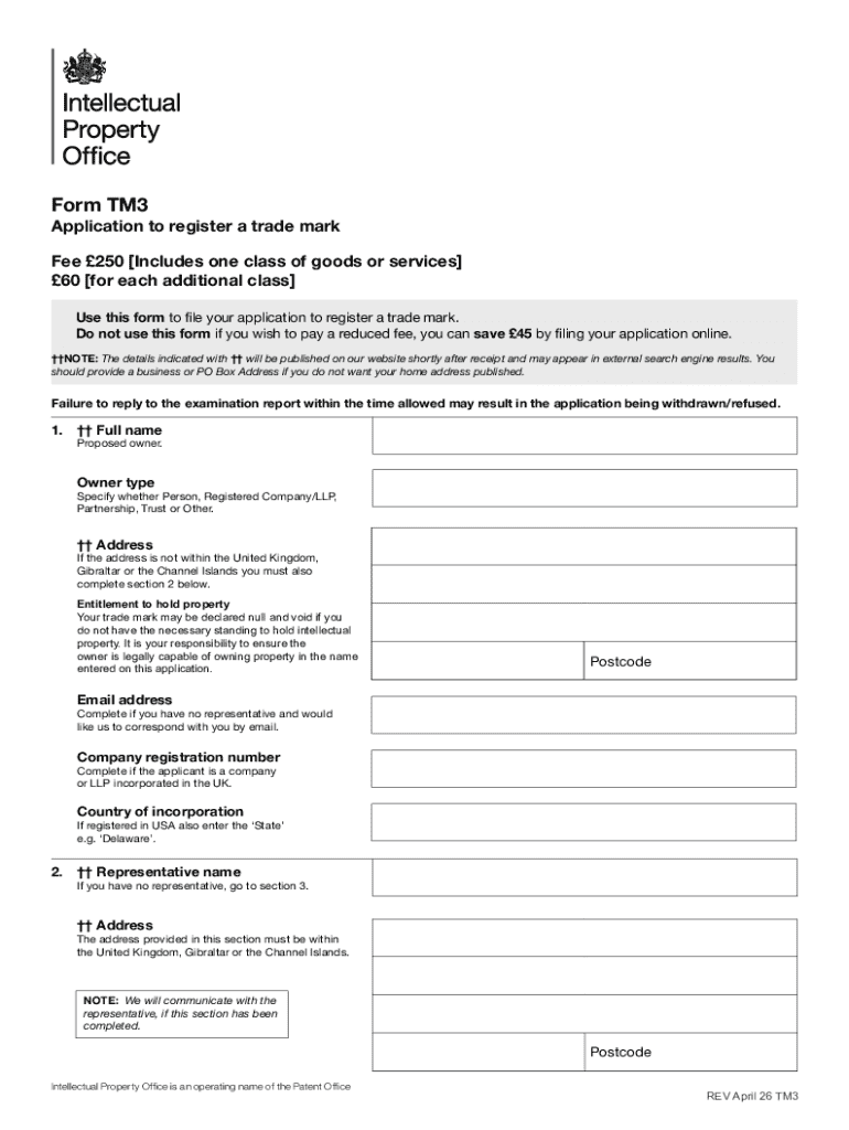 Get the free UK Trade Mark Registration Form TM3