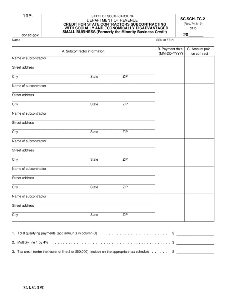 Get the free South Carolina State Contractor Subcontracting Credit Form