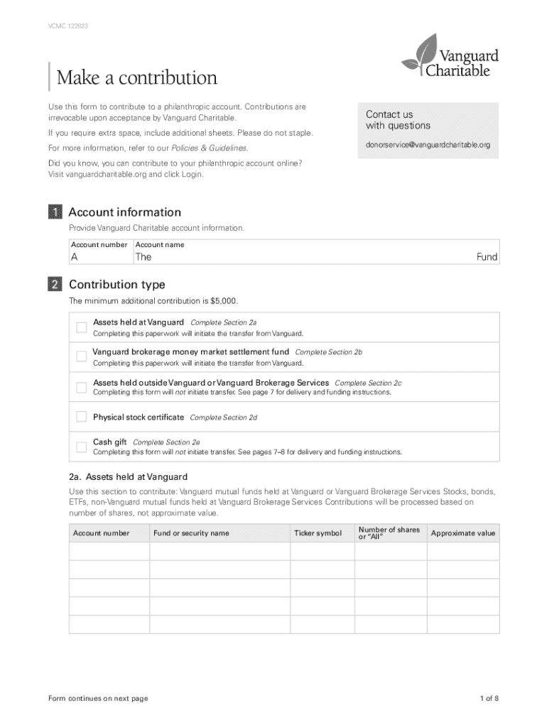 Get the free Vanguard Charitable Contribution Form