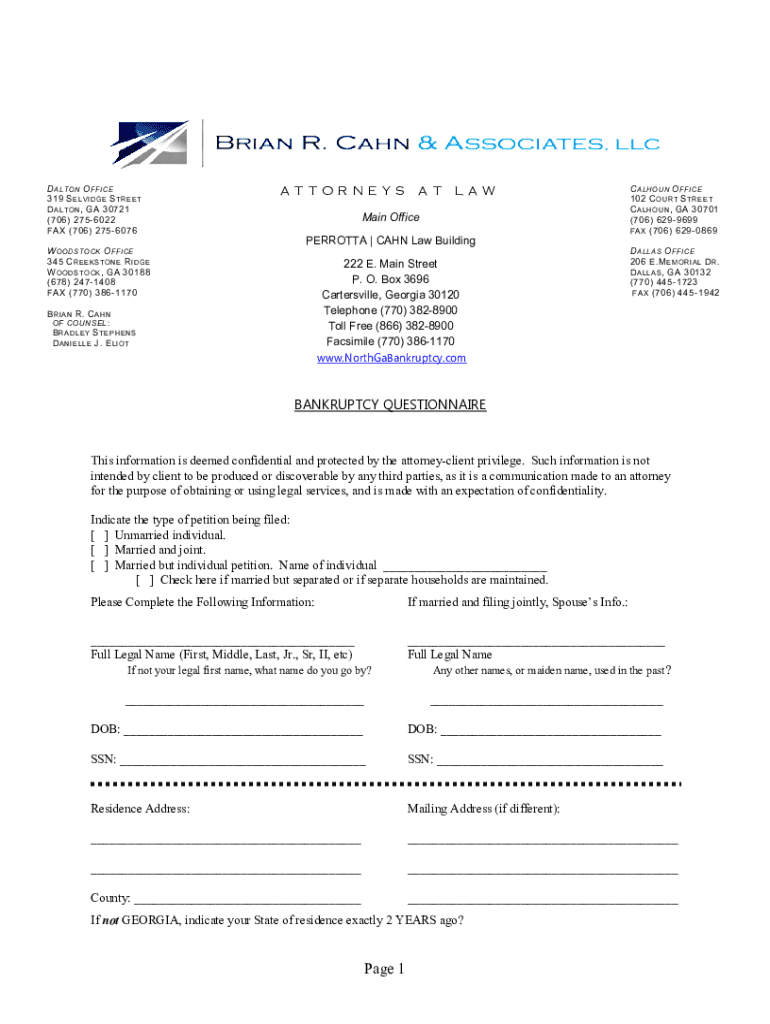 Get the free Bankruptcy Questionnaire