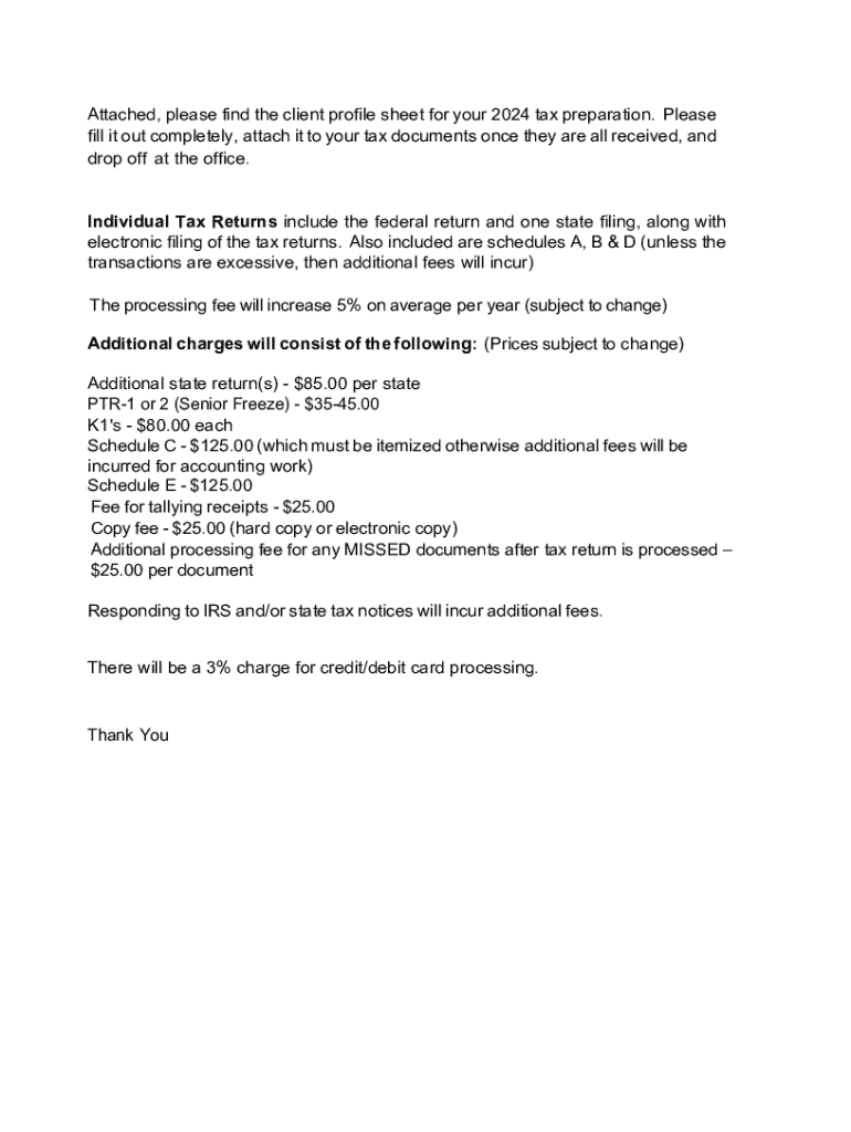 Get the free 2024 Client Profile Sheet for Tax Preparation