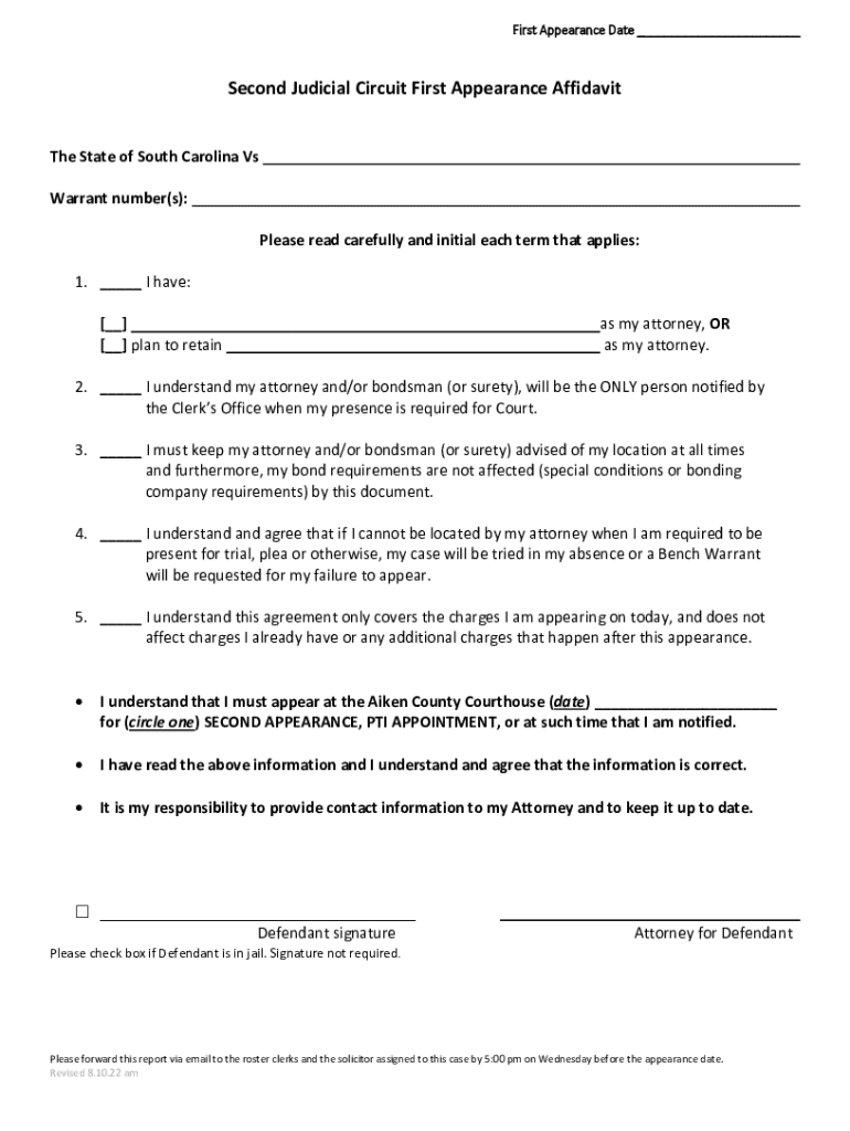 Get the free Second Judicial Circuit First Appearance Affidavit