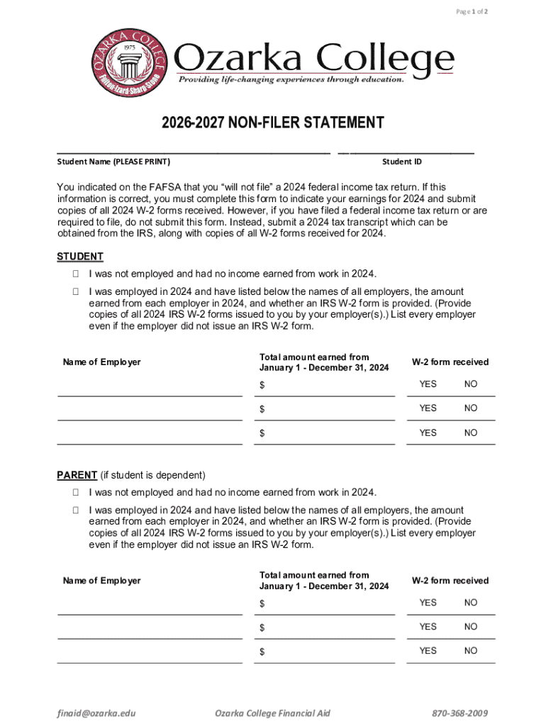 The 2026-2027 non-filer statement is typically required for individuals and families applying for financial aid or assistance programs who do not file annual tax returns.