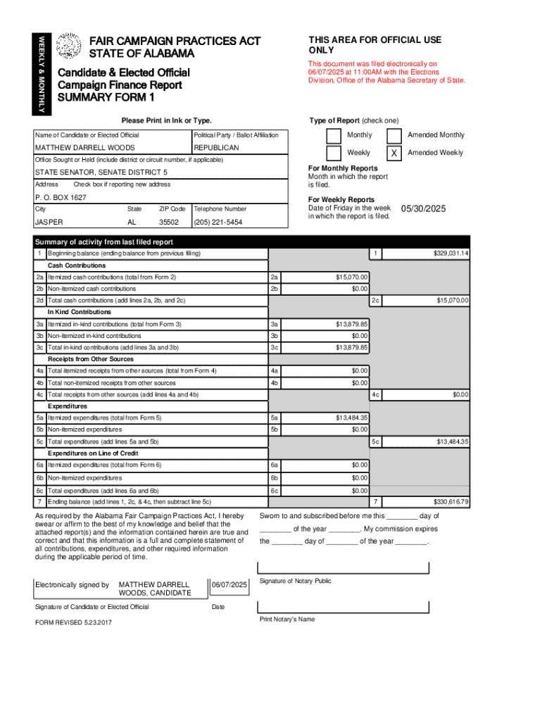 Get the free Alabama Fair Campaign Practices Act Weekly Report