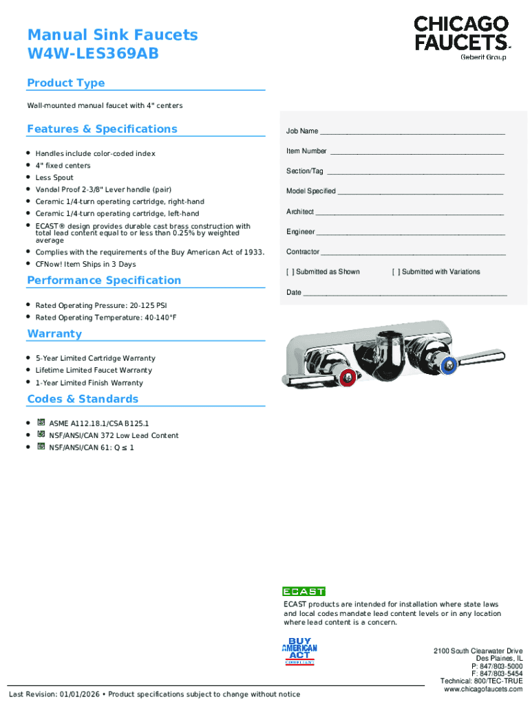Typically, there are no strict deadlines for completing the wall-mounted manual faucet specification; however, it should be filled out promptly to avoid delays in installation schedules or construction timelines.