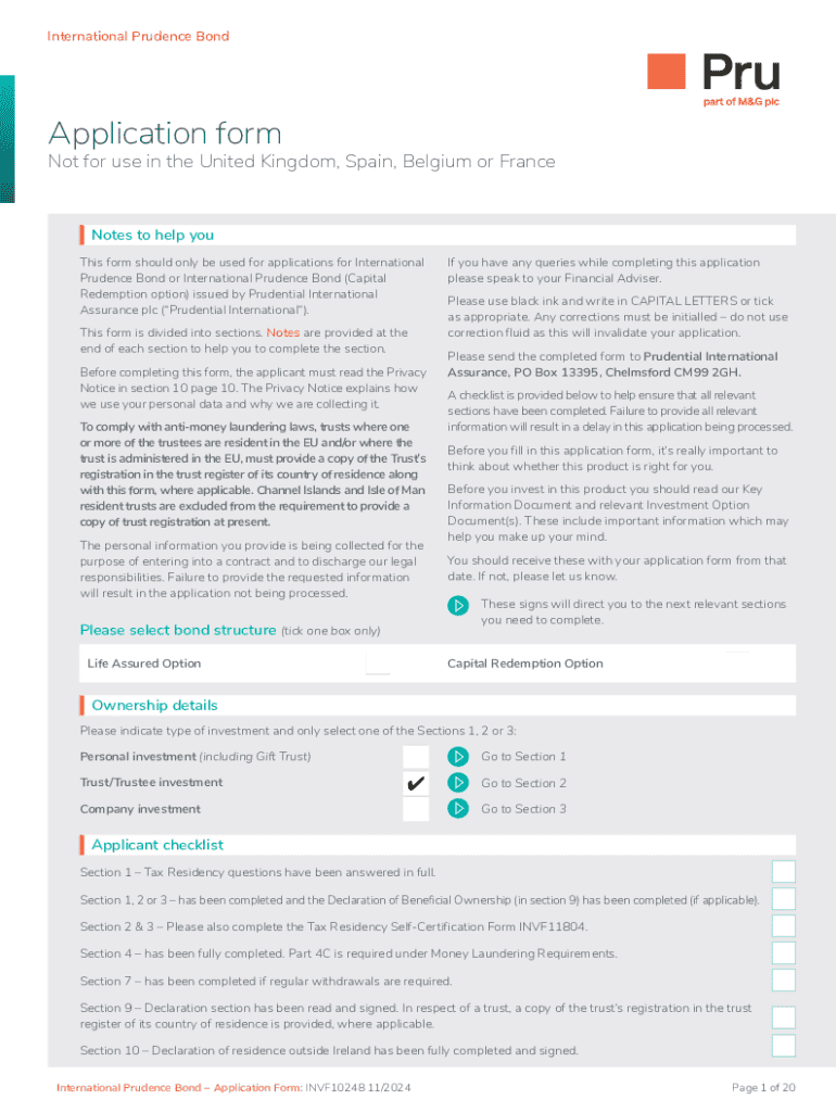 The International Prudence Bond Application is a financial document used by individuals seeking to apply for an international prudence bond to secure their investments.