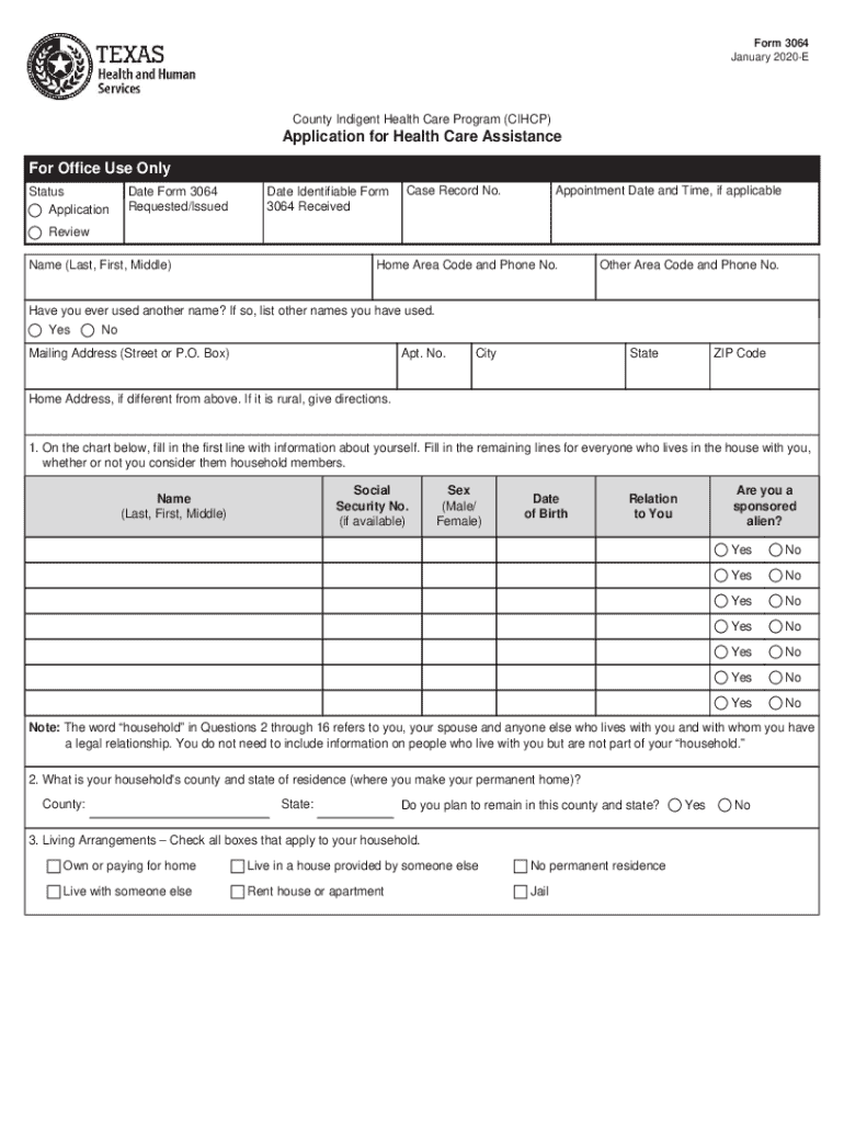 The primary purpose of the Texas Form 3064 Health lies in its role in facilitating access to various health programs and services. Submitting this form is often a required step for individuals seeking assistance or resources from public health initiatives.