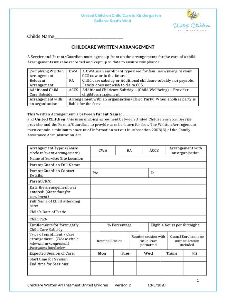 By preparing the required information beforehand, users can streamline the completion process of the childcare written arrangement form.