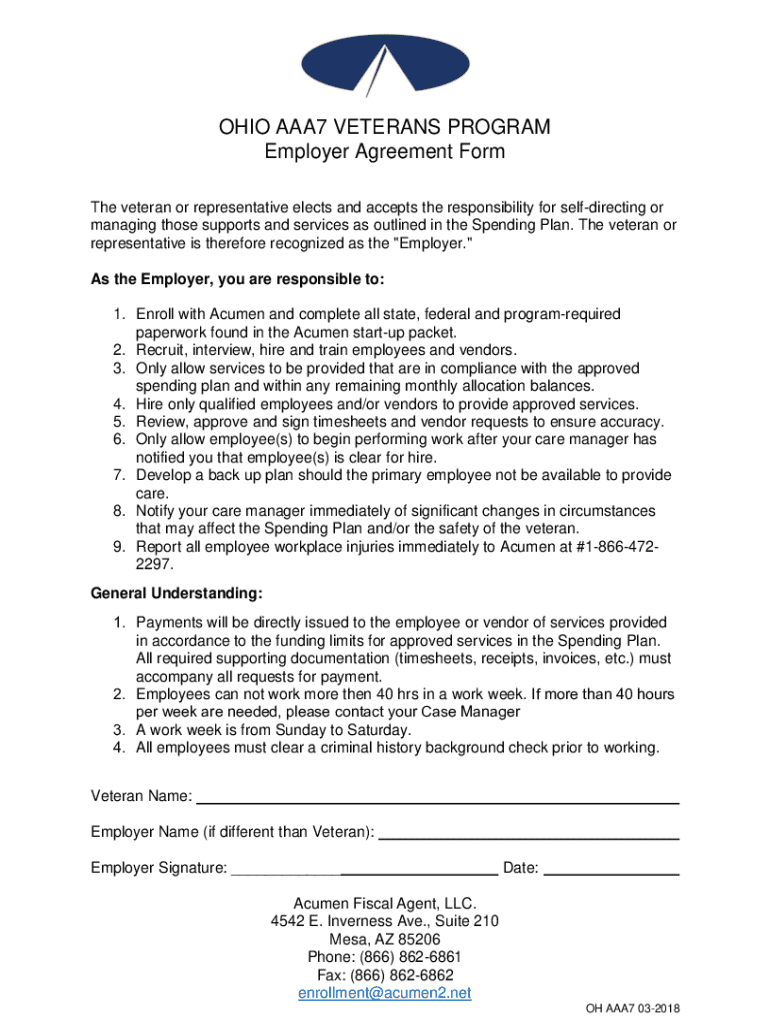 Get the free Ohio AAA7 Veterans Program Employer Agreement