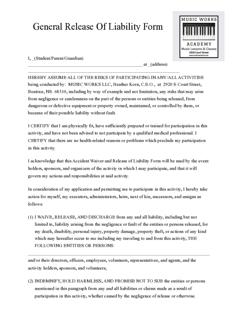 Get the free General Release Of Liability Form