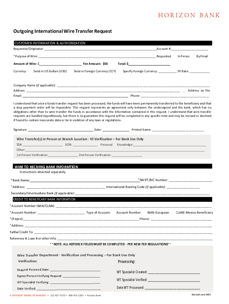 Get the free Outgoing International Wire Transfer Request