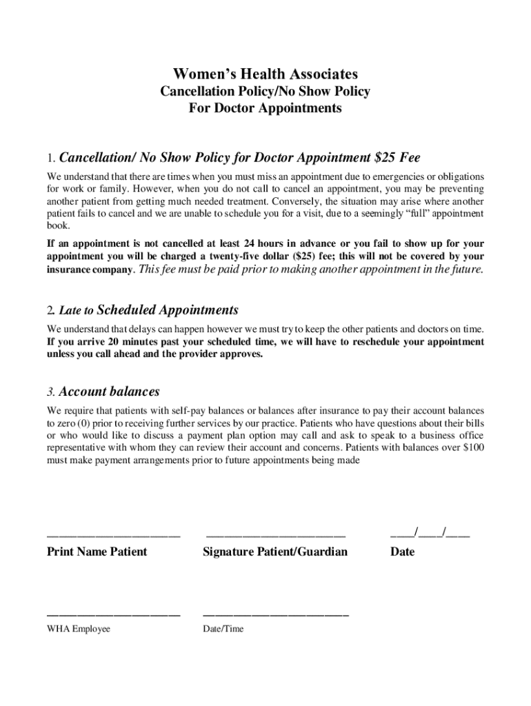 Get the free Women\'s Health Associates Cancellation Policy