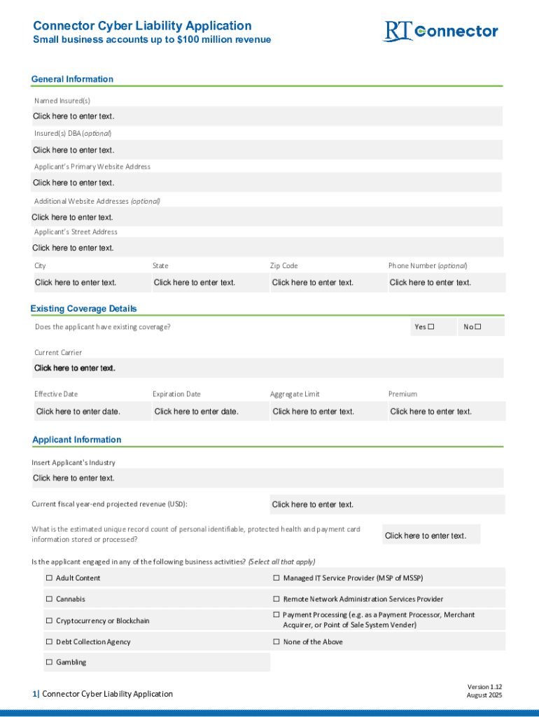 Field-by-Field Instructions for the Connector Cyber Liability Application