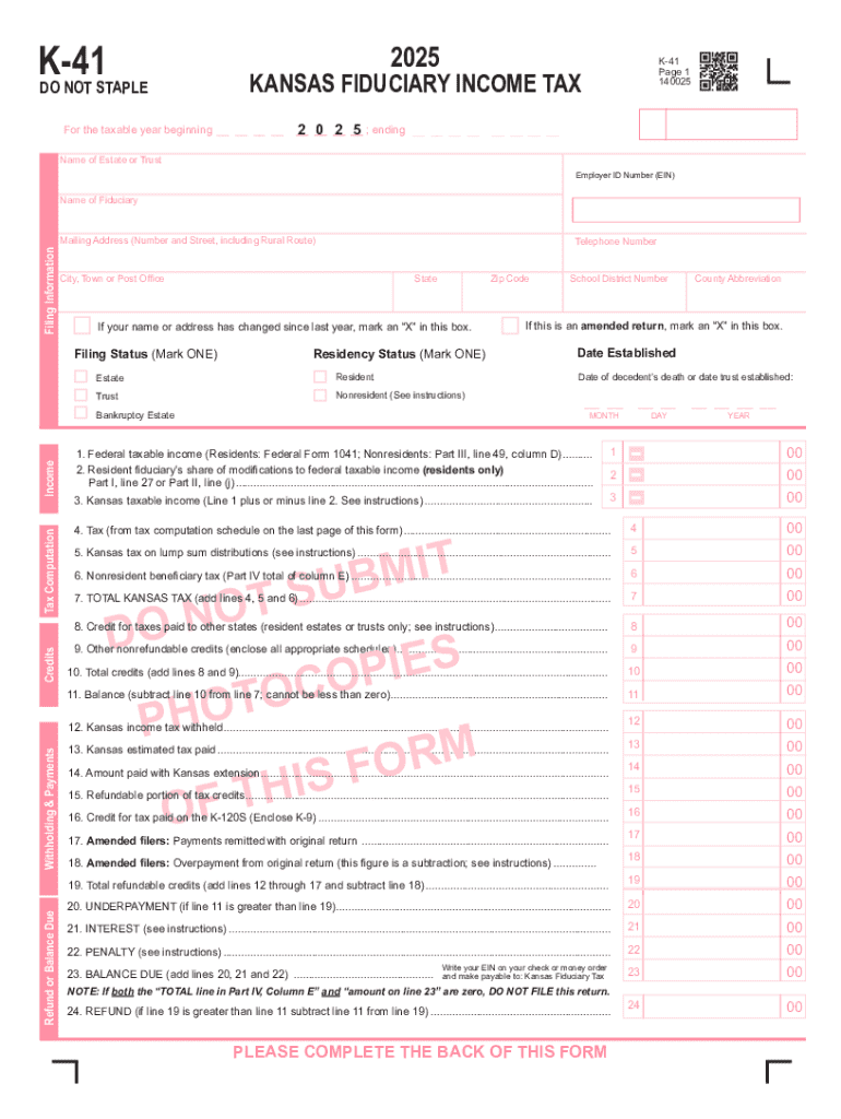 Get the free Kansas Fiduciary Income Tax Form K-41