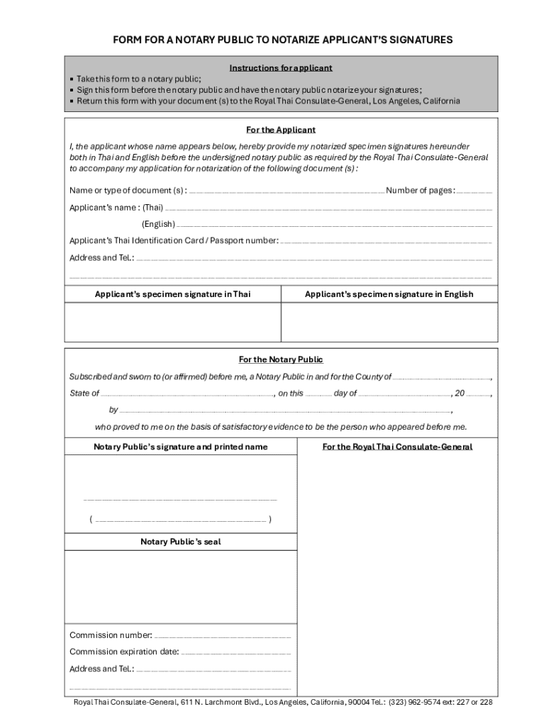 To use the Royal Thai Consulate Notarization, individuals must provide valid identification and present documents that require notarization. Ensure all documents are correctly prepared before submission.