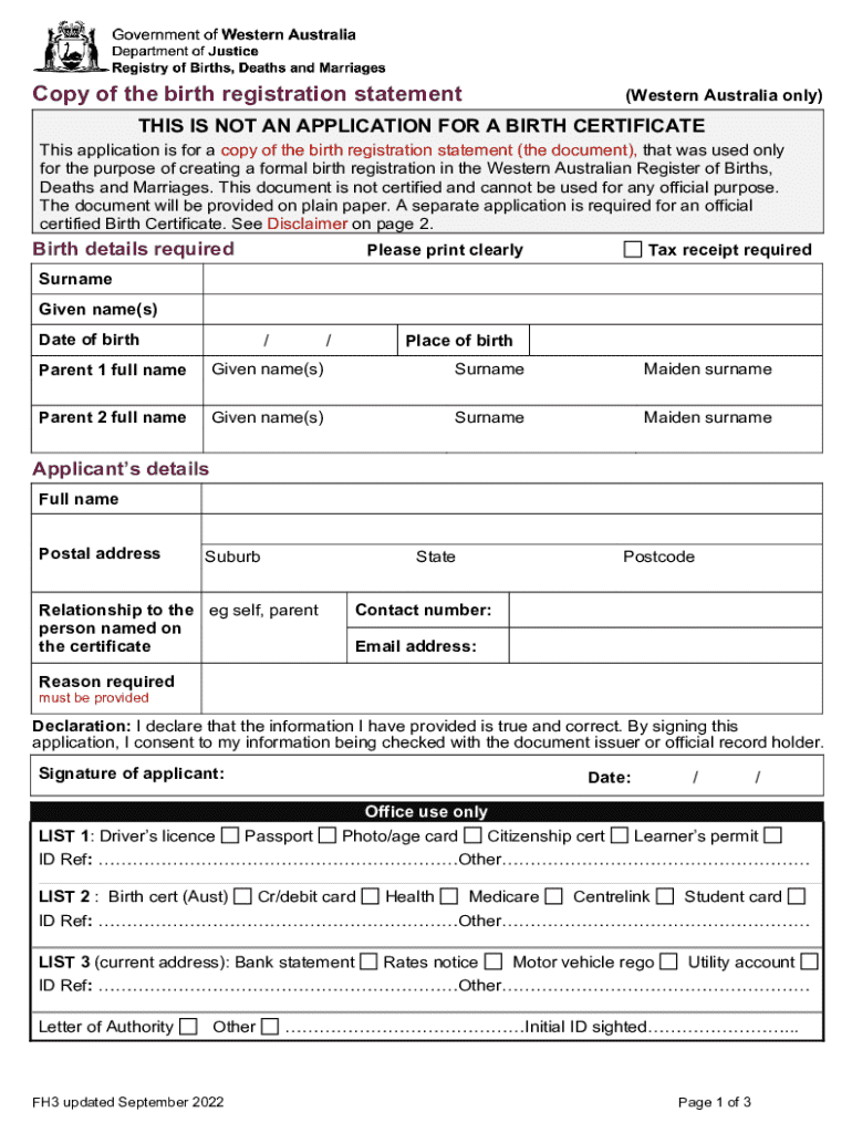 Get the free Western Australia Birth Registration Statement Copy Request