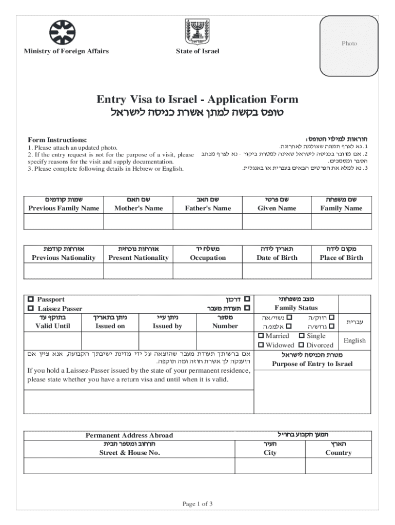 Get the free Entry Visa to Israel - Application Form